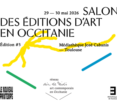 Les 29 et 30 mai 2026, se tiendra la troisième édition du Salon des éditions d’art en Occitanie, initié et organisé par air de Midi à la Médiathèque José Cabanis de Toulouse. Une cinquantaine d’exposant·es, artistes-auteur·ices, maisons d’édition, centres d’art contemporain, musées, écoles d’art et collectifs, seront présent·es pour vendre et présenter une large sélection d’ouvrages d’art (livres d'artistes, fanzines, revues, catalogues, etc.).
