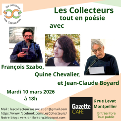 Parmi les Collecteurs, des poètes... François Szabó pour « Idylles de Montpellier », Quine Chevalier pour « Tendresse des parois », et Jean-Claude Boyard pour « Carré d’Arbre »… entre autres. Place à leurs mots !