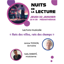 Une heure de lectures de textes de Janine Teisson sur le thème : Villes et campagne, entrecoupées ou accompagnées par les compositions de Sali Diabaté au balafon.