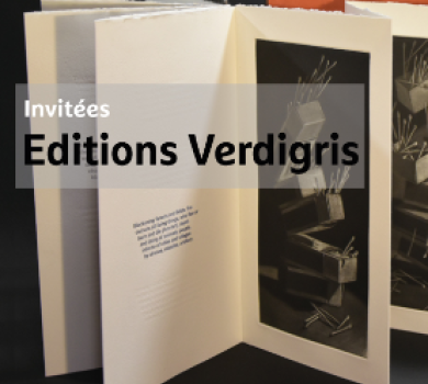 Verdigris est une allusion au cuivre, support utilisé au quotidien par la graveuse Judith Rothchild, originaire de Boston (États-Unis). Formée aux beaux-arts, notamment à la Rhode Island School of Design de Providence, elle travaille d’abord le pastel puis la sérigraphie, avant de s’approprier la gravure en manière noire dès 1997. Ingénieur en mécanique, Mark Lintott devient quant à lui typographe et se lance dans l’aventure de l’imprimerie.