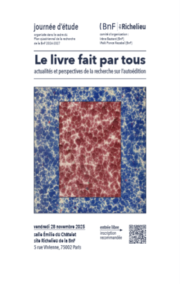 Ainsi dans le cadre du projet EDAM (« autoédition et pratiques amateurs ») financé par le Plan quadriennal de la recherche, la BnF organise cette journée d’étude consacrée à ce « continent ignoré » (Peltier et al.).