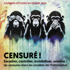Du 12 mars 2026 au 13 mars 2026, le Département Documentation, Archives, Médiathèque et Édition (DDAME) propose deux journées d'études autour de la censure : "Censuré ! Encadrer, contrôler, invisibiliser, orienter : les censures dans les sociétés de l'information".
